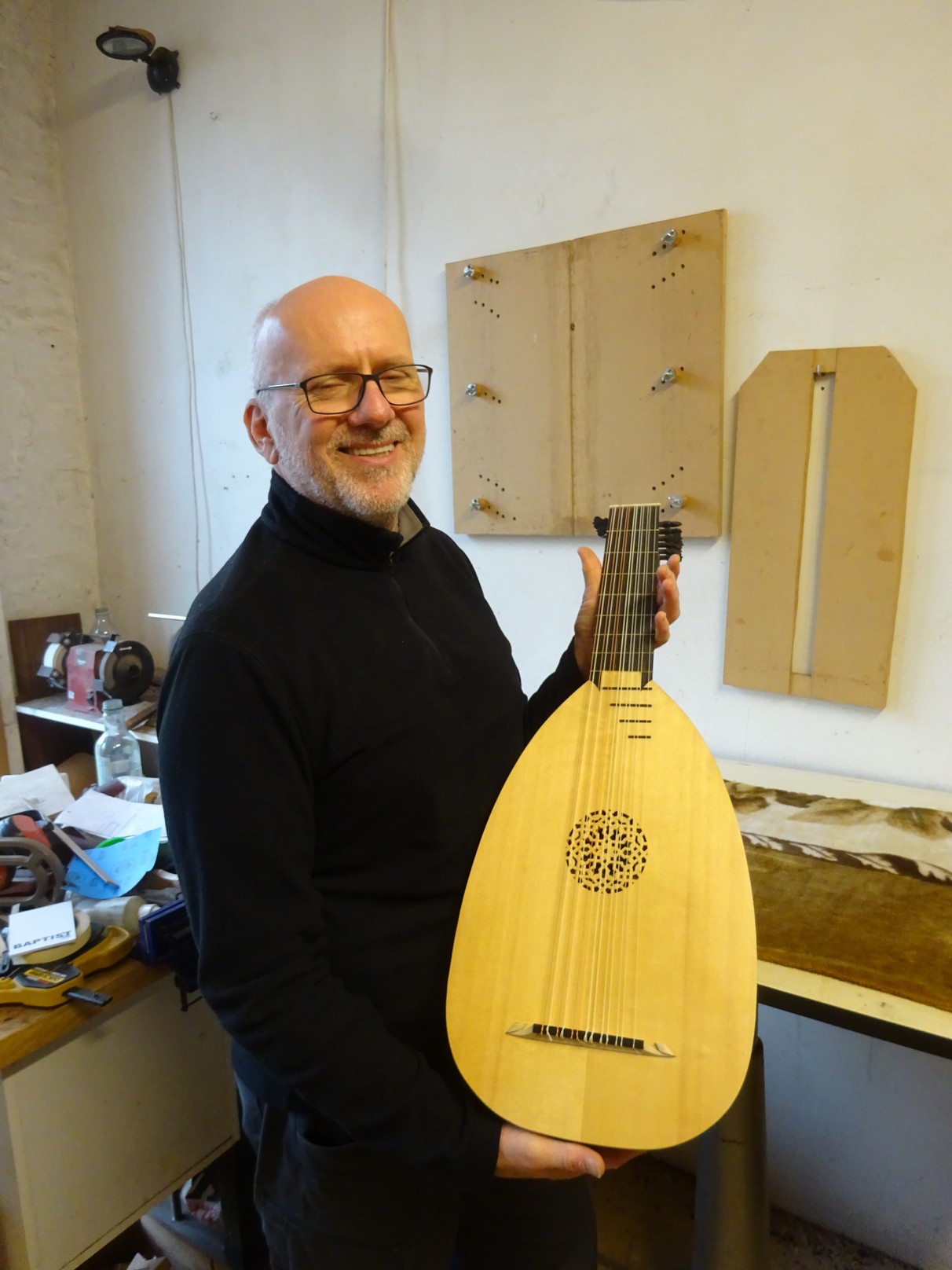 Werner, een vriend, heeft bij mij een luit afgewerkt die hij in zijn jonge jaren begon te maken in het CMB (Centrum voor Muziekinstrumentenbouw). Na een huwelijk en het opvoeden van 2 dochters, kwam er terug tijd vrij. En die is goed gespendeerd. Mijn dochter zal dit instrument bespelen. En voor de toekomst: we gaan samen een barokgitaar in elkaar steken.